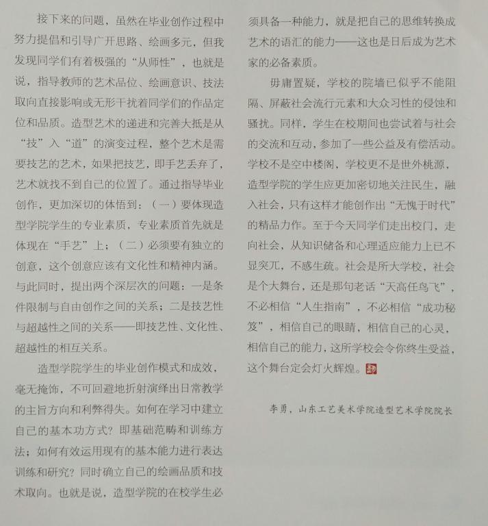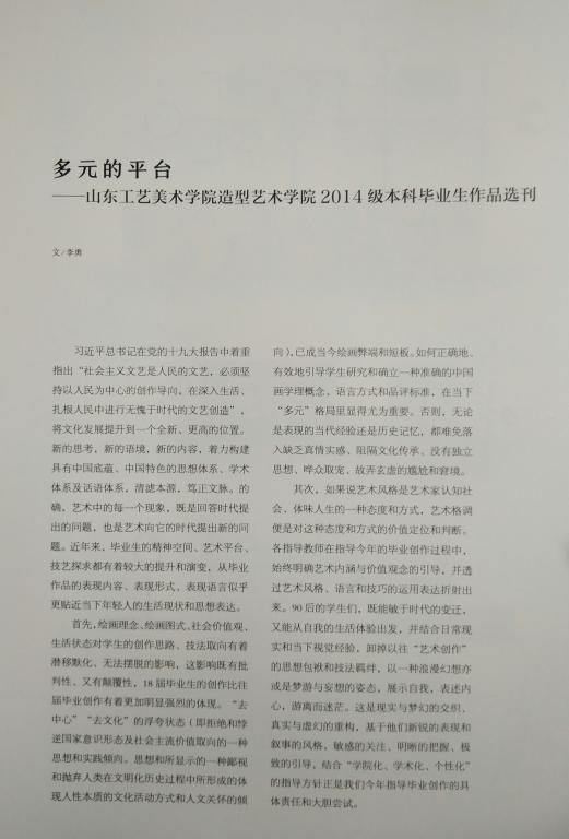 学院坚持以教学为中心,遵循高等教育发展规律,在毕业教学与实践中提倡艺术风格的不断创新与多样化,积极为毕业生提供展览交流、对外推介的平台。本次毕业生作品的刊登不仅展示了我院毕业生的优秀创作成果,也是对我院教学教育成果的充分认可。