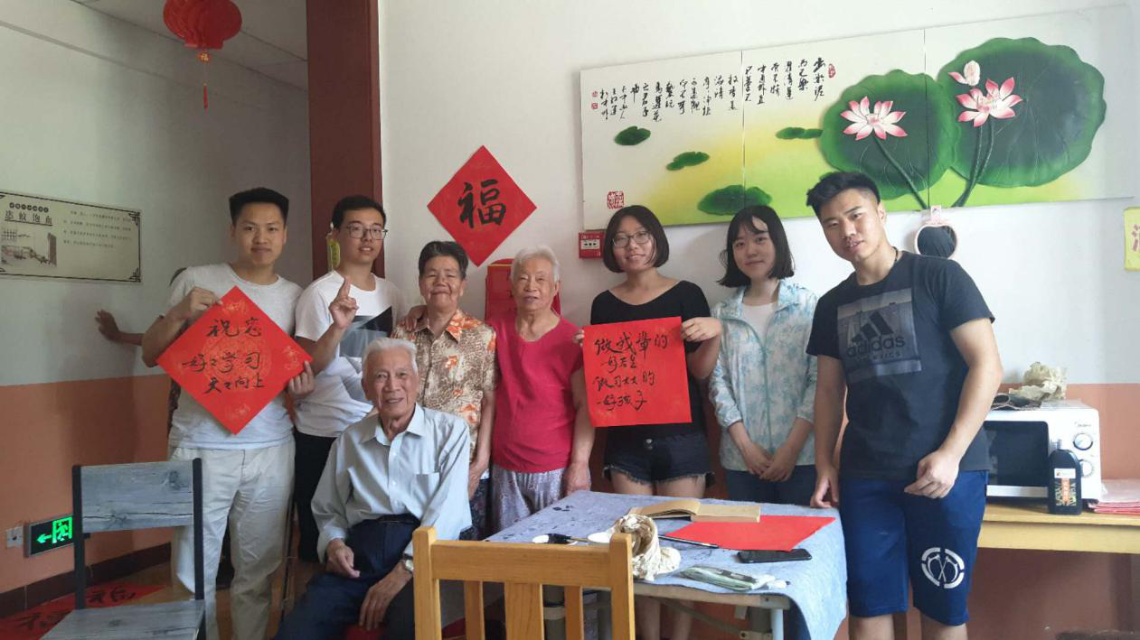 温暖敬老院,爱心实践活动,6月13日,造型艺术学院毕业生党员,学生干部和毕业生代表组成的爱心小队前往济南市泉鑫老年公寓,架起与老人之间的爱心桥梁,为需要帮助的人献出温情。老人对同学们的到来感到非常高兴。接下来,大家分别去跟老人们聊天,询问他们的生活和健康情况,通过与老人们之间的交流、谈话与他们建立了良好的关系。为了发挥同学们的专业特长,大家带去了速写本及笔墨纸砚为老人们画人物速写、书写福字,更有同学将自己的专业技能教授给感兴趣的老人。 本次活动的顺利开展,一方面,锻炼了同学们的沟通能力,使他们能够更好地与老人沟通,宽慰老人心理,有益于老人身心健康;另一方面,使得毕业生党员在离校前强化了党员意识,以自己的实际行动为党旗增辉,为母校添彩,将来可以更好的服务于社会,为建设一个充满爱心的社会献出自己的一份力量。
