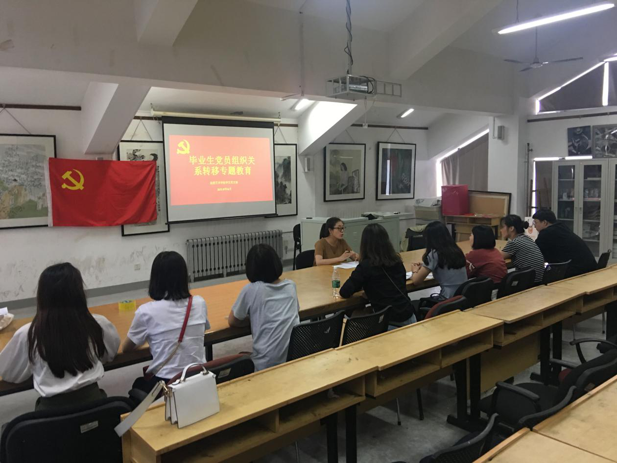 开展组织关系转移专题教育。6月19日下午,造型艺术学院学生党支部在四楼多媒体教室开展毕业生党员组织关系转移专题教育。学生党支部书记王晓琼向毕业生党员讲解了组织关系转移的一系列问题,老师对已落实工作单位、未落实工作单位和考取外校研究生的毕业生党员的组织关系转移地点分别进行了详细叙述,并提醒要同学们及时到接收组织关系部门办理接转手续,以免介绍信丢失或过期,同时也对介绍信遗失,如何重新办理等相关事项进行了说明。老师通过详细的案例,向毕业生党员讲明了离校后转移组织关系应该注意什么、应该怎么做,帮助毕业生党员提高了自身的思想认识。