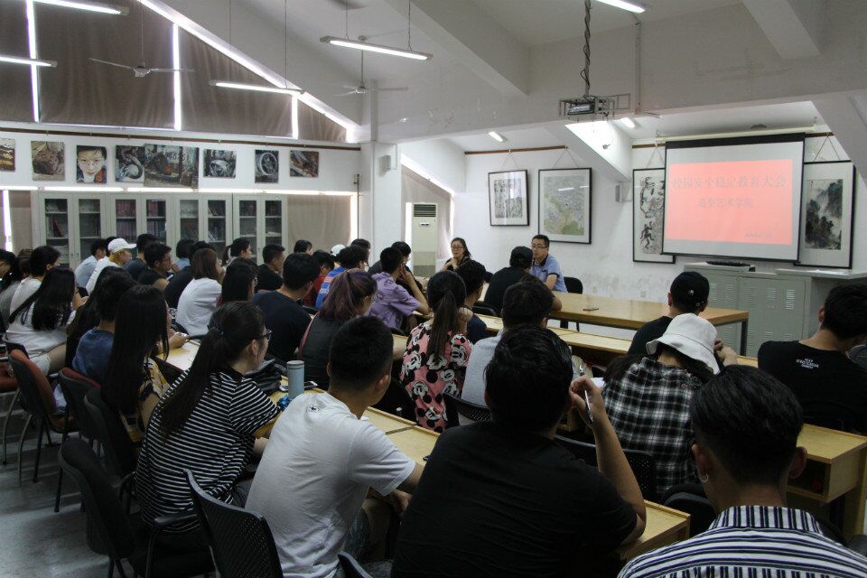 为贯彻落实学校安全稳定工作,进一步加强校园安全管理,切实维护学校安全稳定。6月5日,造型艺术学院于学院多媒体教室召开校园安全稳定大会。会议由辅导员王晓琼、许威治主持,各班级主要学生干部参加会议。