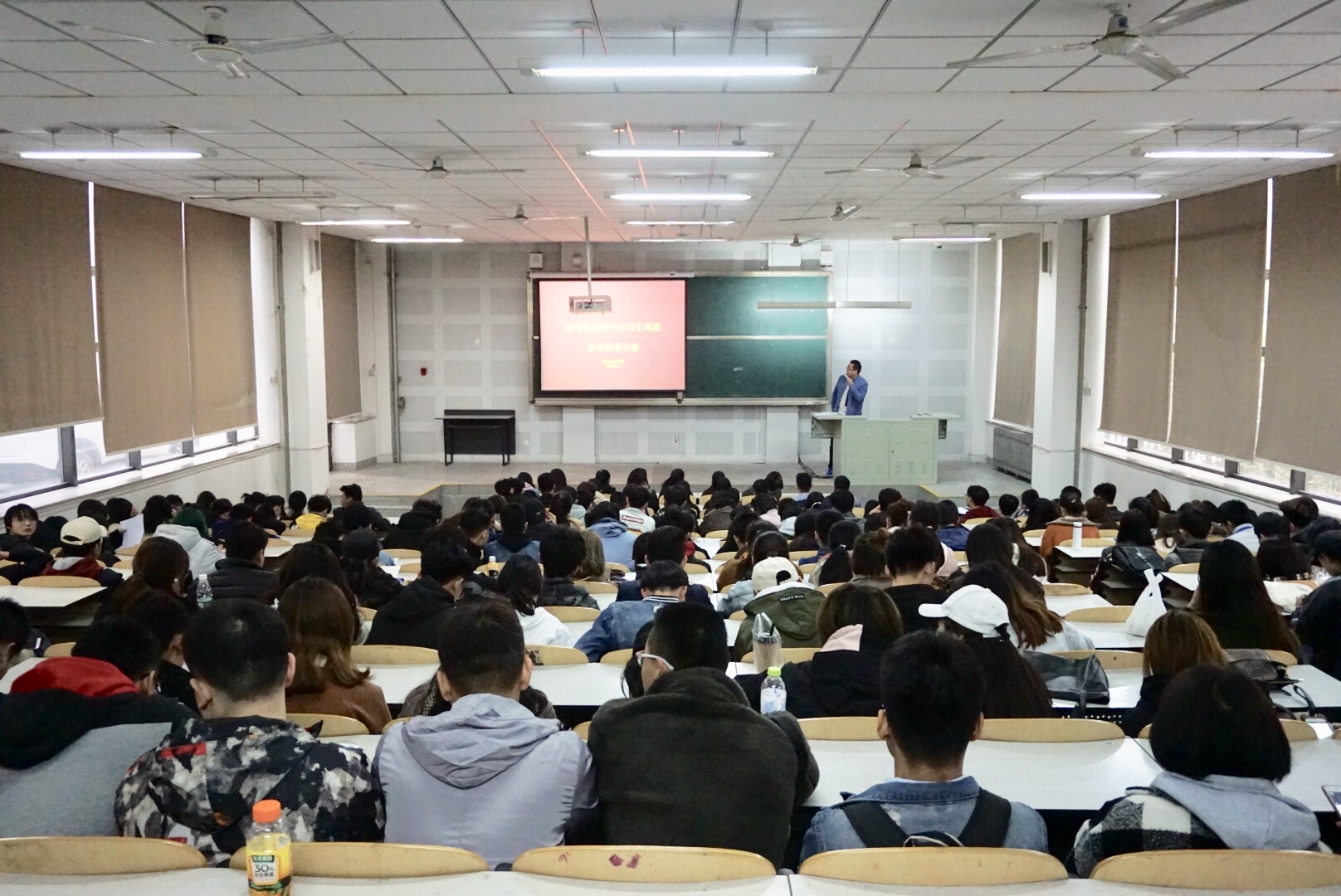 2018年4月4日中午,造型艺术学院于长清校区综合办公楼九合堂召开清明假期暨外出写生离校安全教育大会。辅导员许威治主持,2016及2017级全体同学参加会议。
