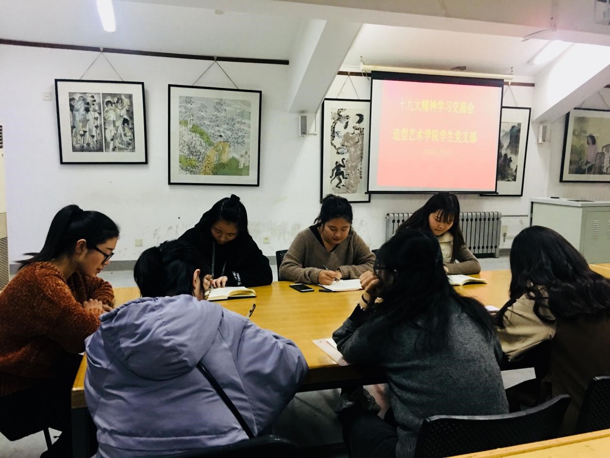 随着中国共产党第十九次全国代表大会的胜利召开,根据学校党委有关认真学习贯彻党的第十九次全国代表大会精神,打牢思想基础的要求,2018年1月10日晚6时,304am永利集团官网造型艺术学院党支部于综合楼四楼多媒体教室组织全体学生党员开展学习十九大精神主题活动。本次会议以“不忘初心,砥砺前行”为主题,由造型艺术学院学生党支部书记王晓琼老师主持召开,全体学生党员积极参与。