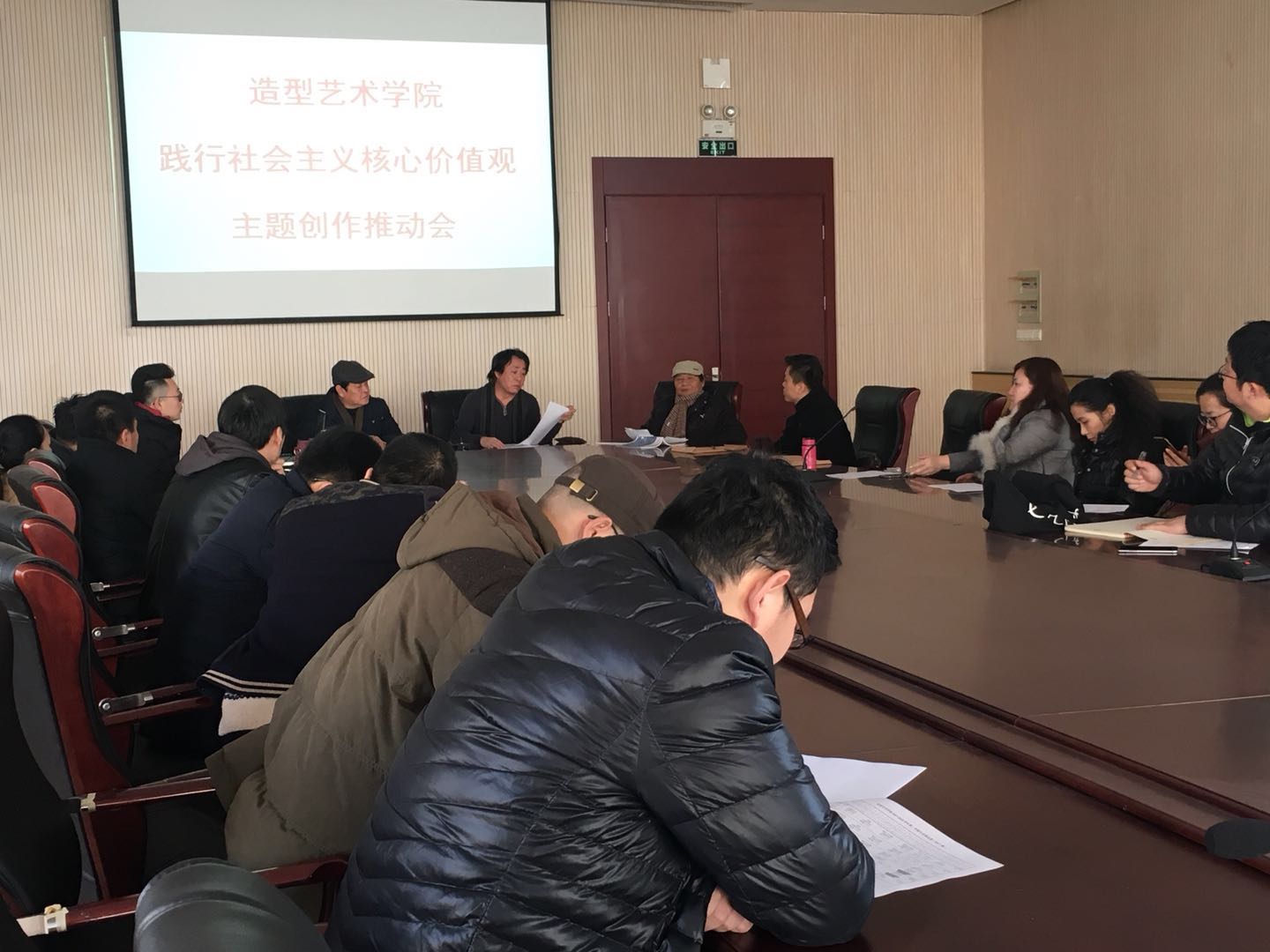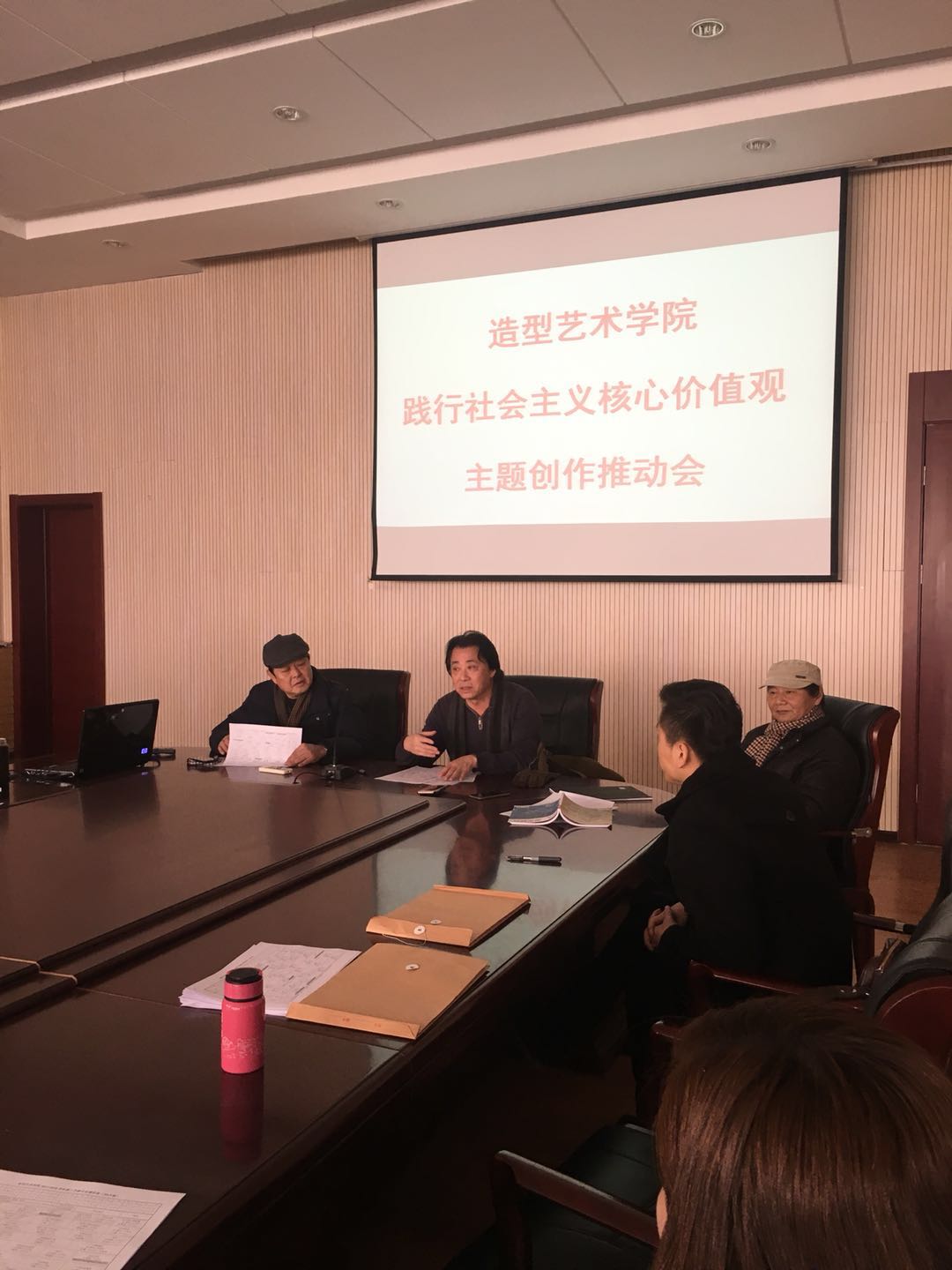 1月5日下午,304am永利集团官网造型艺术学院在千佛山校区办公楼二楼会议室召开践行社会主义核心价值观主题创作推动会。造型艺术学院副院长李勇及全体教师参加会议。会议由副院长李勇主持。
