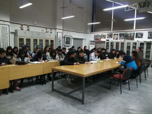 为了响应学校要求,深入学习宣传党的十九大精神,切实把思想和行动统一到十九大决策部署上来。2017年12月13日下午,造型艺术学院在四楼多媒体教室召开认真学习宣传贯彻党的十九大精神动员会。本次动员会由造型艺术学院团总支书记王艳辉、辅导员王晓琼、许威治老师进行讲解,各班班委积极参加。