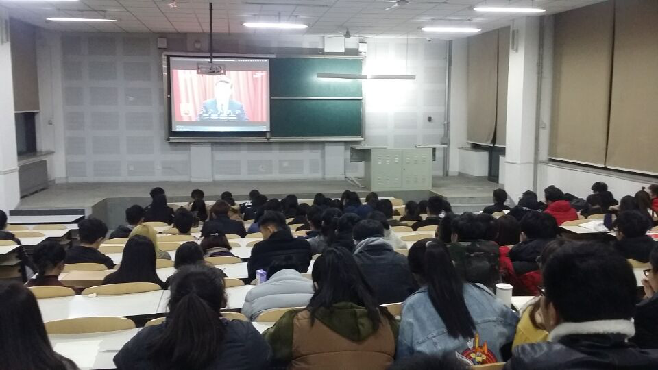 团课伊始,王艳辉老师简单阐明了本次团课的主题。随后,王老师从几个方面进行了详细讲解。提出“青春喜迎十九大,不忘初心跟党走”。表示本次活动旨在服务党政大局、凝聚共识、汇聚力量。并要求我们牢固树立政治意识、大局意识、核心意识、看齐意识作为灵魂和方向,积极踊跃投身青春建功、争创一流青春业绩,贡献青春力量、展现青春风采。最后,王老师带领全体17级学生共同观看第十九次全国代表大会。全体团员认真倾听习近平总书记讲话,感触颇深。
