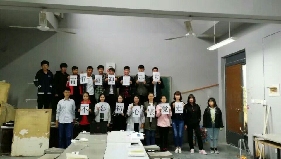 为了顺利迎接十九大,深入贯彻落实党的十九大精神,全面提高我院全体同学政治道德素养。2017年10月18日,造型艺术学院各班级开展“青春喜迎十九大,不忘初心跟党走”的主题班会。此主题班会由2014级、2015级、2016级、2017级各班班长,团支书组织,全体同学参加了此次班会。