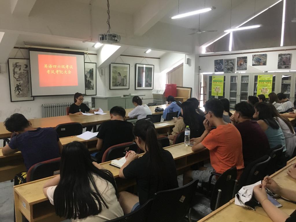 为了迎接即将到来的大学生英语四六级考试,响应学院“重视考风考纪教育,营造公平竞争氛围”的号召,进一步规范学院考试工作,树立良好考风。造型艺术学院于2017年6月14日在四楼多媒体教室召开了四六级考试诚信教育例会,本次会议由辅导员王晓琼老师主持,14、15、16级全体班委参加了此次会议。