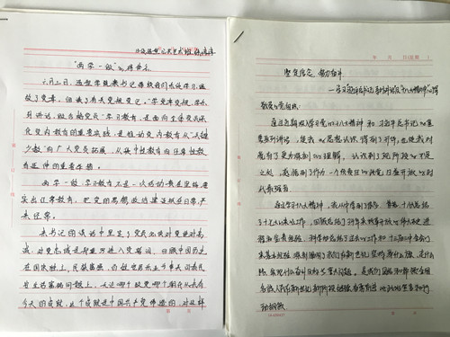 党课教育活动后,我院严格按照校党委组织部要求开展活动:组织毕业生党员结合自己的大学生活,围绕对党的十八大、十八届三中、四中、五中全会精神和习近平总书记系列重要讲话精神提交了一份学习心得并做思想汇报,进一步提升了自身的理论素养,坚定了共产主义信念,与此同时,毕业生党员与低年级学生党员展开学习讨论并开展了手抄党章活动;5月31日,我院学生党支部开展以“为党旗增辉、向母校献礼”为主题的实践活动,毕业生党员在会议中积极发言,为母校建言献策。同日,我院组织学生进行学习讨论活动,学习成绩优异、工作能力突出的优秀毕业生党员结合自身经历从不同角度与低年级学生党员、入党积极分子进行了一次经验交流分享活动,帮助低年级学生党员、入党积极分子坚定理想信念,合理做好大学生活、学习规划。