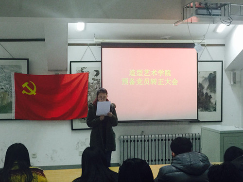 2015年12月30日,造型艺术学院学生党员转正大会在永利官网长清校区综合办公楼四楼多媒体教室顺利召开,本次会议由造型艺术学院学生党支部书记王艳辉老师主持,辅导员王晓琼老师、造型艺术学院各级学生党员、预备党员入党积极分子参加会议。
