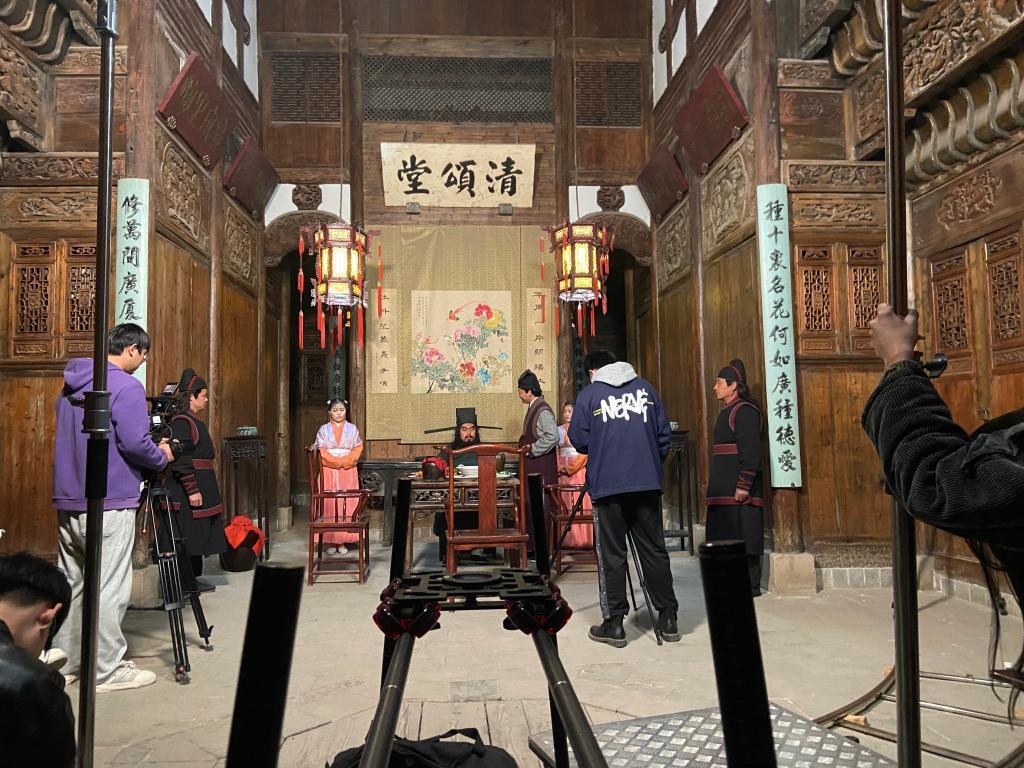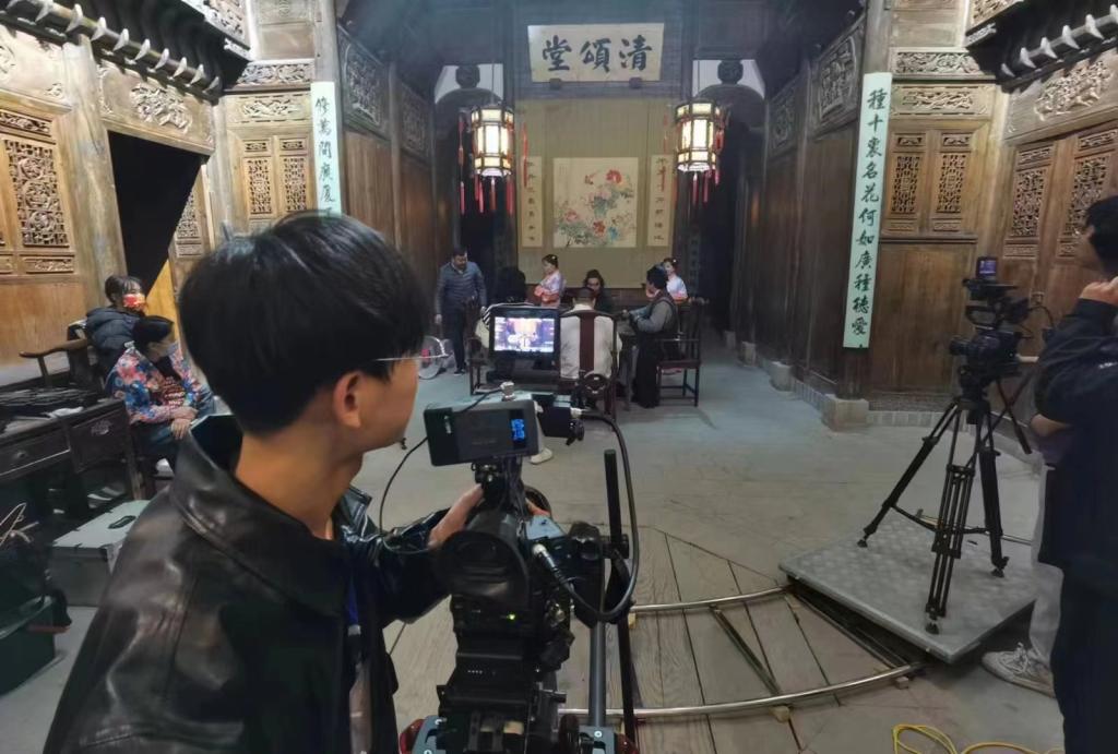 自传统文化数字影像校企共建实验室成立以来,数字学院与蟠龙梆子影业在戏曲电影、纪录片、专题片、科教片联合摄制方面进行深度合作,以项目教学的形式推进传统文化数字影像的多元化发展。在项目推进过程中,我院师生充分发挥专业优势和创新精神,与蟠龙梆子影业团队紧密合作,共同完成了从剧本创作、拍摄制作到后期剪辑的各个环节,学生们在剧组中分别担任摄影、灯光、场记、化妆等职务,他们凭借良好的专业能力协助剧组在最短时间完成高质量的影片拍摄工作,不仅提升了实践能力和创新思维,也深刻感受到了传统文化的魅力和现代科技的力量。