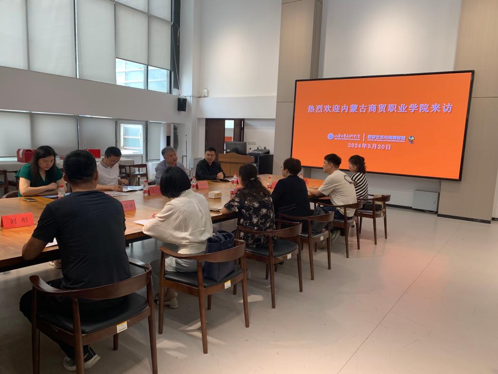 5月20日,内蒙古商贸职业学院信息技术系主任旭日、数字媒体技术专业带头人孙志颖、动漫制作专业骨干教师芦超、计算机应用技术专业带头人邢苗苗等一行8人,来数字艺术与传媒学院走访交流。数字艺术与传媒学院院长吴向阳、网络信息管理中心副主任李广福、副院长张光帅、游戏艺术设计教研室主任牟堂娟参加座谈。
