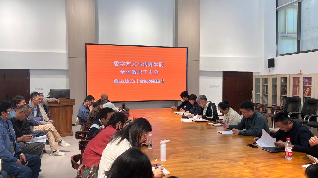 11月3日下午,数字艺术与传媒学院在学院B446会议室召开全体教职工大会,学院党政领导班子成员及全体教职工参会。