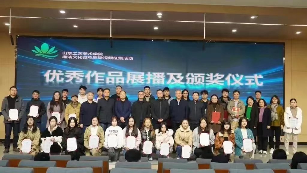 活动中,数字艺术与传媒学院党总支书记李清华介绍了廉洁文化微电影微视频作品的创作过程以及此次活动的组织开展情况。出席活动领导观看了获奖优秀作品,并为获奖师生代表颁奖。优秀指导教师代表艾琳、冯秀彬分别分享了指导创作感受,一等奖作品《戏影》创作团队成员影视摄影与制作专业学生赵丹分享了创作心得。