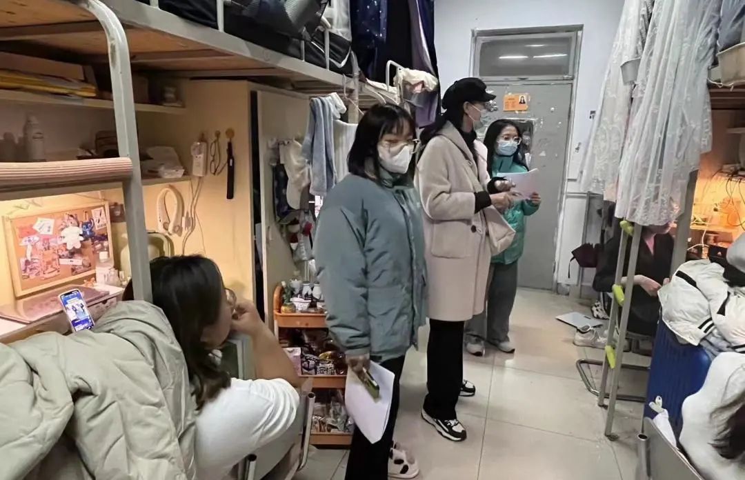此次走访活动,覆盖学院全部学生公寓,共计224间宿舍、1133名学生。在走访过程中,学院领导、老师和同学们亲切交谈,仔细询问同学们的网课学习和饮食起居等情况,耐心倾听同学们的心声、回应同学们的诉求,向同学们传达了学校疫情防控政策,叮嘱同学们要严格遵守校规校纪,鼓励同学们克服困难、踏实学习,同时要做好科学防护,保持宿舍卫生,及时开窗通风,关注天气变化,注意防寒保暖,加强体育锻炼,提高身体素质。