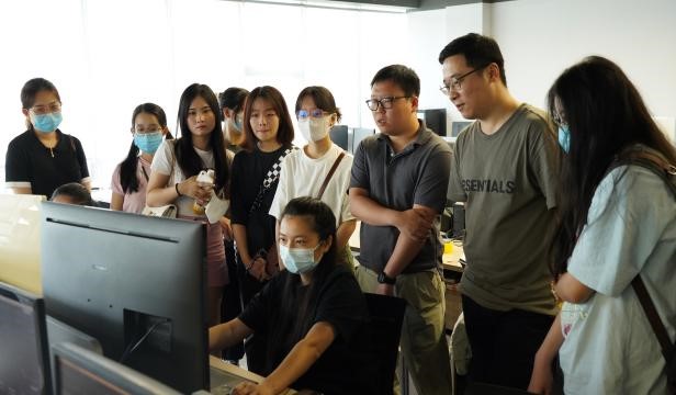 讲座结束后,在李总的引领下我们来到办公区,参观了解了公司正在参与制作的业务项目、不同部门的分工和制作流程。参观过程中,企业负责人结合公司正在制作的待播剧特效以及动画动漫人物的3D建模等实操技术,其中穿插了对制作软件的运用与学校课程和行业需求进行了联合讲解。