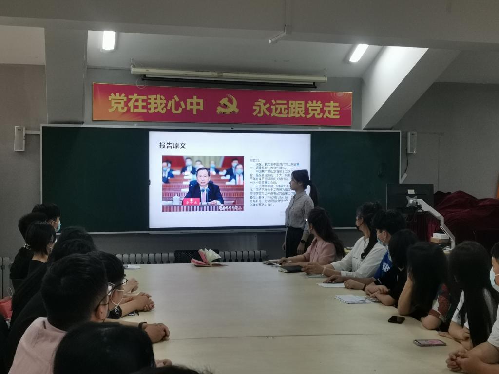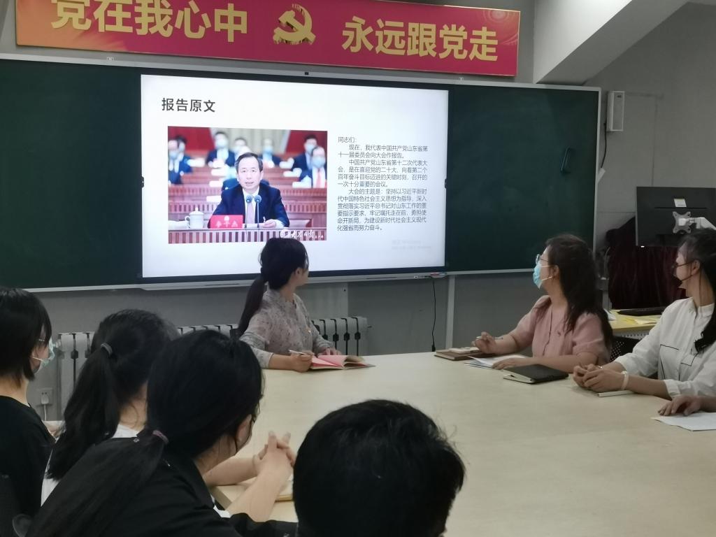 5月28日到6月1日,中国共产党山东省第十二次代表大会在山东会堂胜利召开。为了更好地学习领悟本次大会精神,引导青年大学生听党话、跟党走,数字艺术与传媒学院学生第一、第二党支部于2022年6月15日下午,在B446会议室,组织学生党支部全体党员,集中学习李干杰同志在山东省第十二次党代会上作的报告。