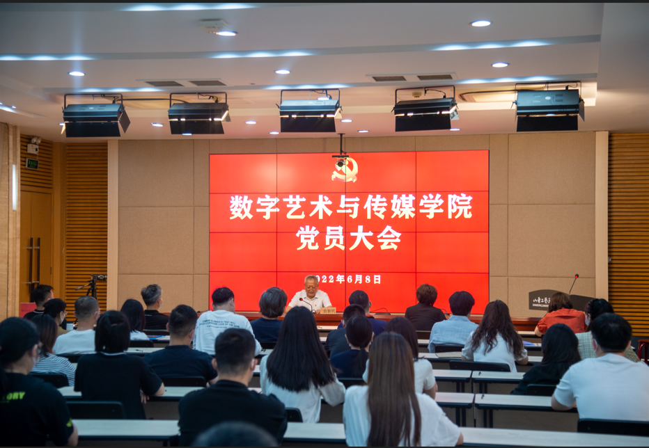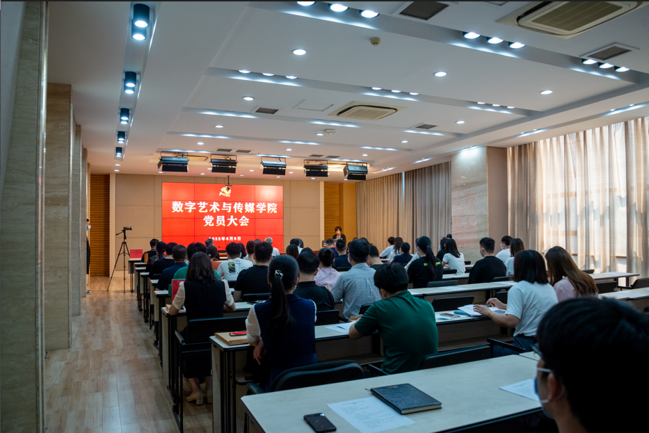 数字艺术与传媒学院全体党员参加会议。学校各党总支和党委直属党支部负责人到会进行观摩。