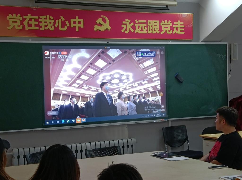 为严格落实疫情防控要求,学院安排了集中观看与分散观看两种方式,组织优秀共青团员代表、优秀青年志愿者代表、各团属学生组织代表于b446教室进行大会直播的集中观看。