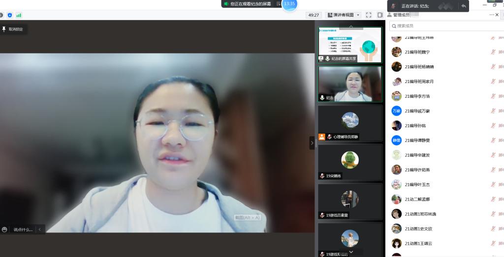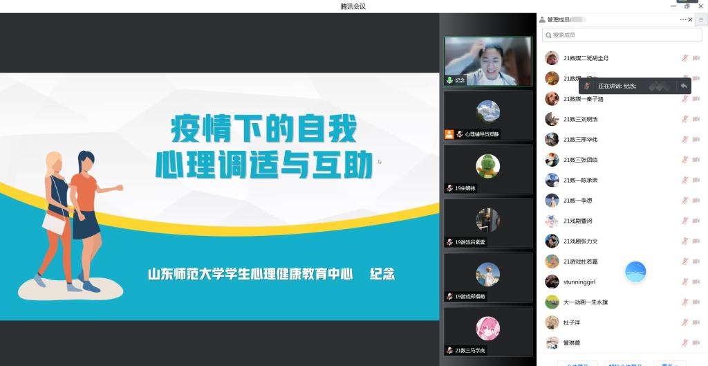 纪念老师主要从心理健康与问题识别、常见心理问题的自我调适、助人的态度与技能三个方面,详细阐述了疫情期间该如何正确认识个人心理健康,如何调适自我和帮助他人。