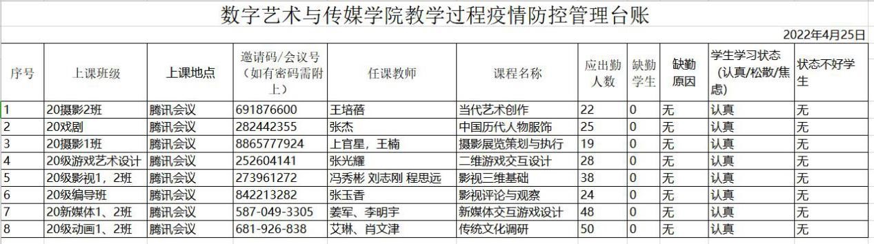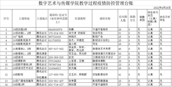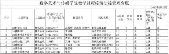 本学期第9周,也是线上教学第5周,数字艺术与传媒学院本周共有28个班上课,涉及学生682人,其中24人为校外网课学生,开展专业课19门,线上授课教师33人,学生到课率100%。