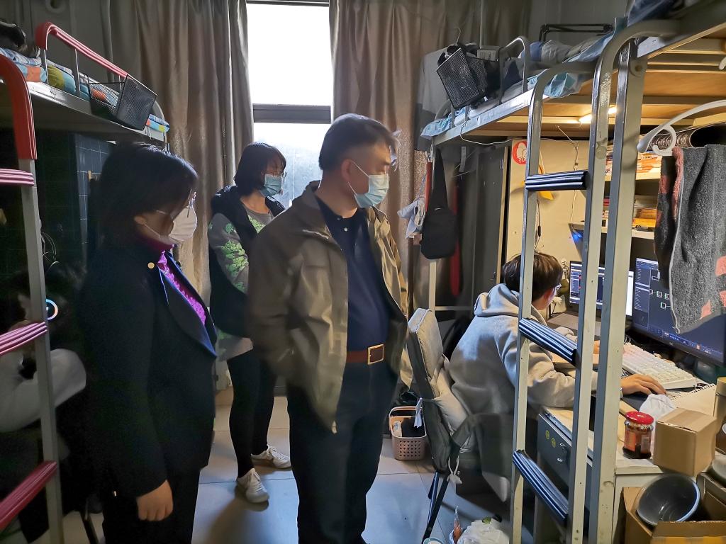 为进一步落实《304am永利集团官网线上教学工作方案》相关要求,提升线上授课教学质量,同时保障学生公寓安全稳定与整洁,4月4日上午,数字艺术与传媒学院院长吴向阳,党总支书记李清华,党总支副书记王华玲,团总支副书记李灿,辅导员郑静、巩珂来到学生公寓,开展线上教学督导暨公寓安全卫生大检查相关工作。
