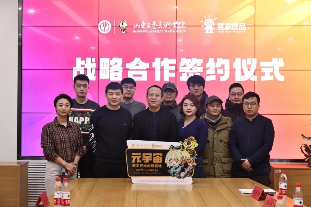 昱家良品董事长李昱良先生对顾院长的发言深表赞同。他从艺术市场前景与细分引题,站在我国文创产业领域关于自有文化符号的创立与品格、市场拓新以及本地人才特性的角度,表示非常荣幸能与数字艺术与传媒学院建立合作机制,希望通过产教融合的模式共同为本土培养人才,做有品质有格调有本土新时尚特色的文化产品,为山东文创产业做出贡献。