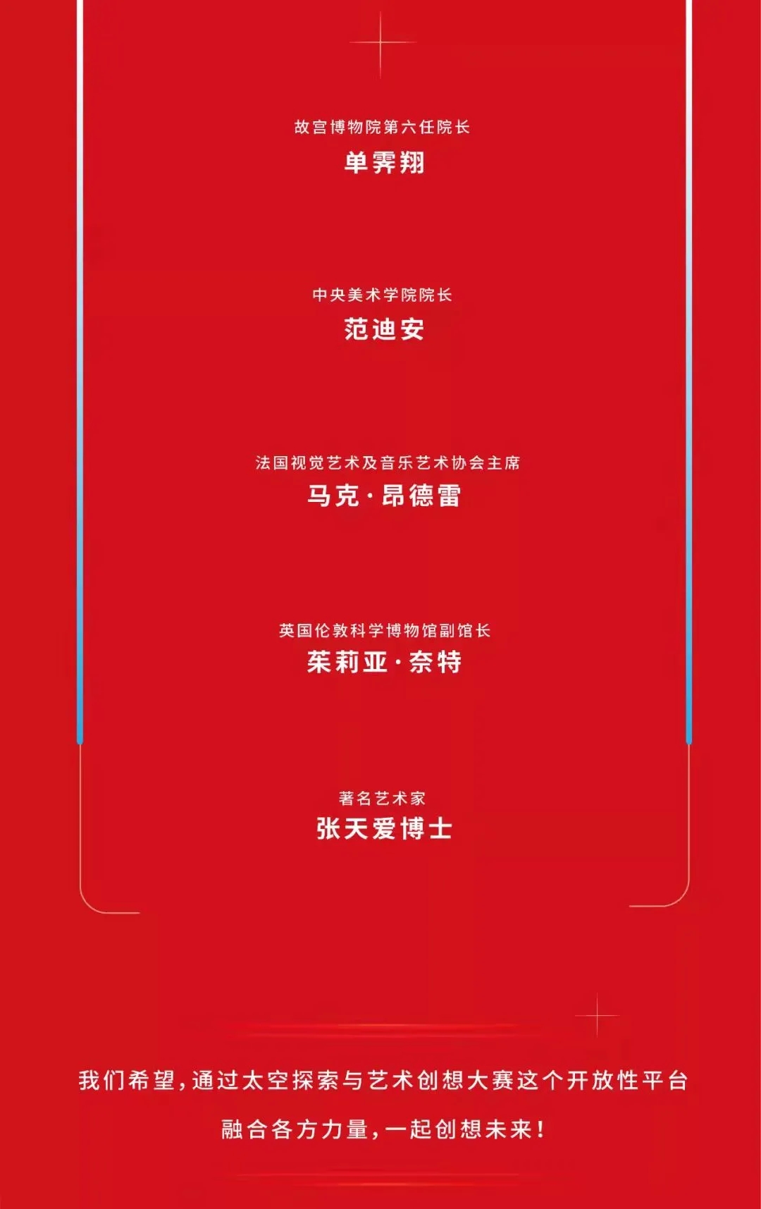 太空探索与艺术创想大赛正在面向全球广泛征集作品,正式赛截稿时间为2022年2月底,将于2022年4月24日中国航天日期间为获奖选手颁发大奖。