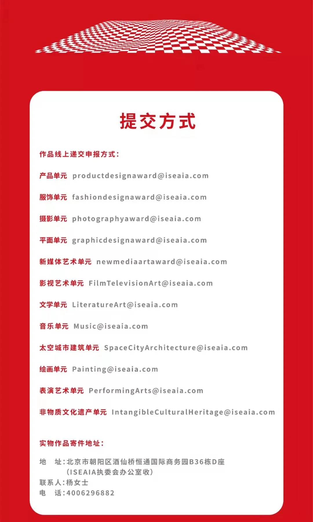 赛事涉及平面、摄影、服饰设计、产品设计、新媒体艺术、绘画、太空城市建筑、影视艺术、音乐、文学、表演艺术、非物质文化遗产类等12个比赛单元,面向全球广泛征集作品。