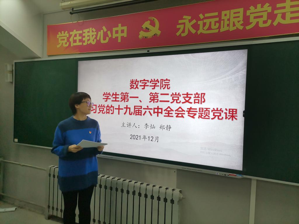 为深入学习贯彻党的十九届六中全会精神,数字艺术与传媒学院学生第一、第二党支部于12月13日下午,在B446开展学习党的十九届六中全会专题党课。学生第一、第二党支部书记李灿、郑静主讲,学生第一、第二支部全体党员参加会议。
