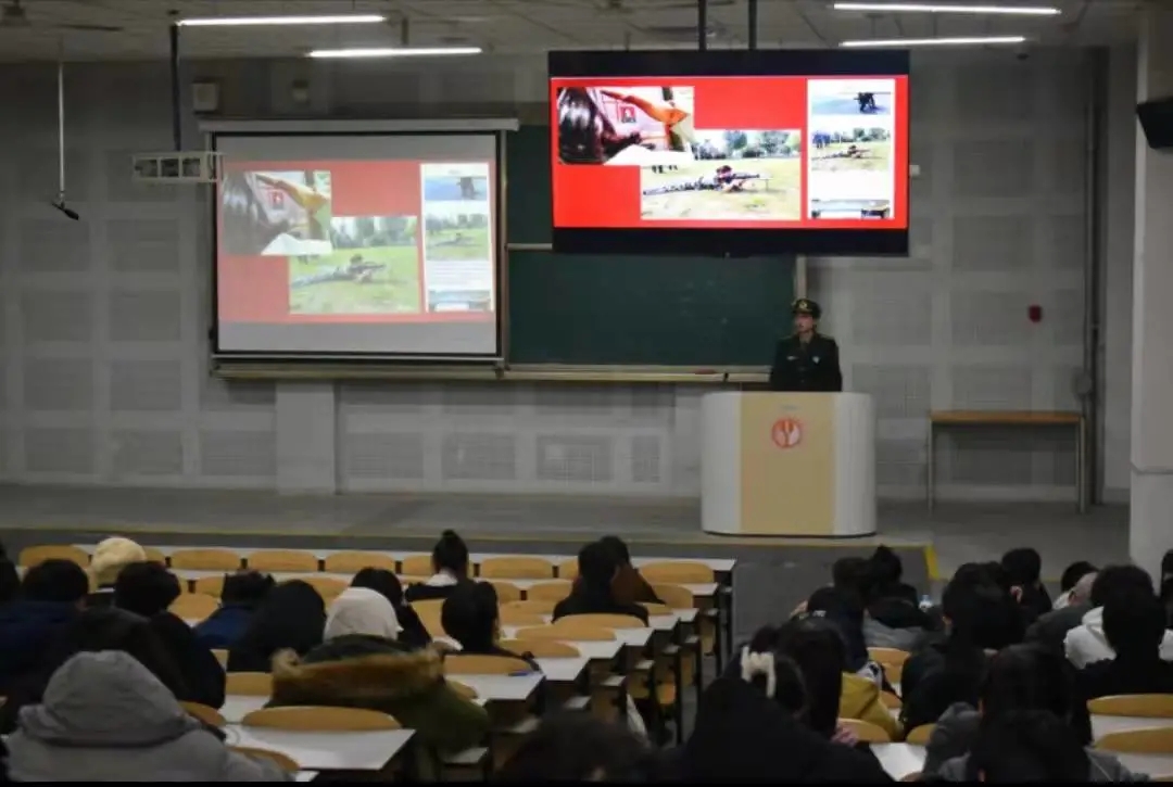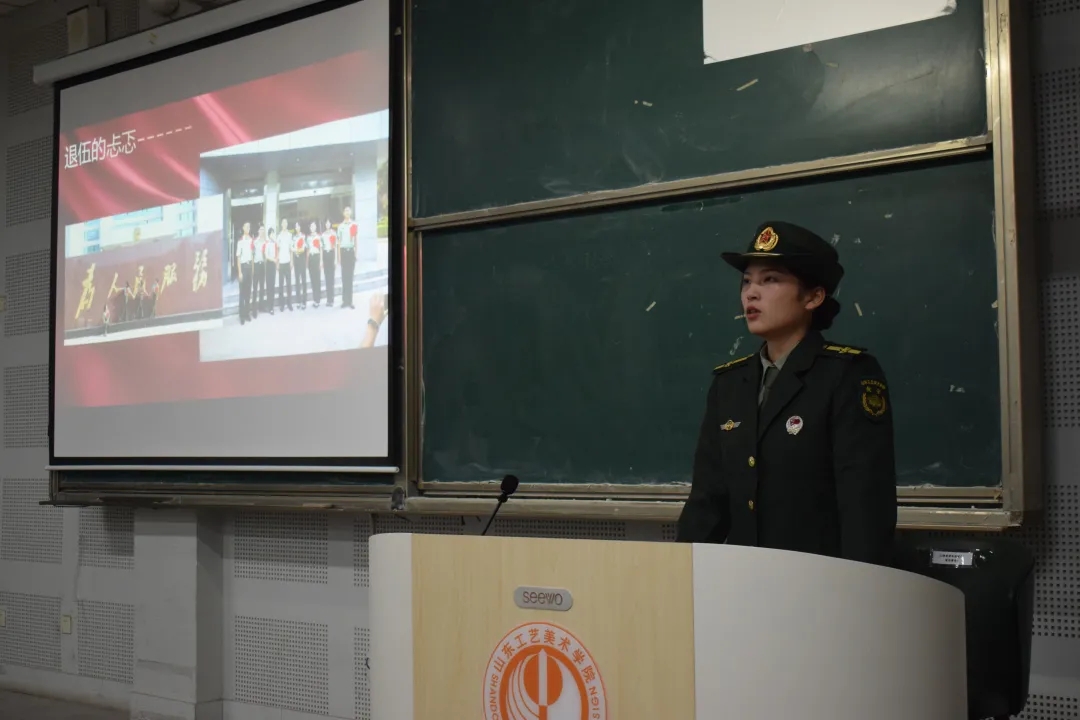 为鼓励同学们积极参加应征入伍,提高同学们的综合素质,2021年12月11日,数字艺术与传媒学院于八合堂开展了征兵宣传活动。活动面向21级全体新生,由我院退役大学生士兵白春草同学担任主讲。