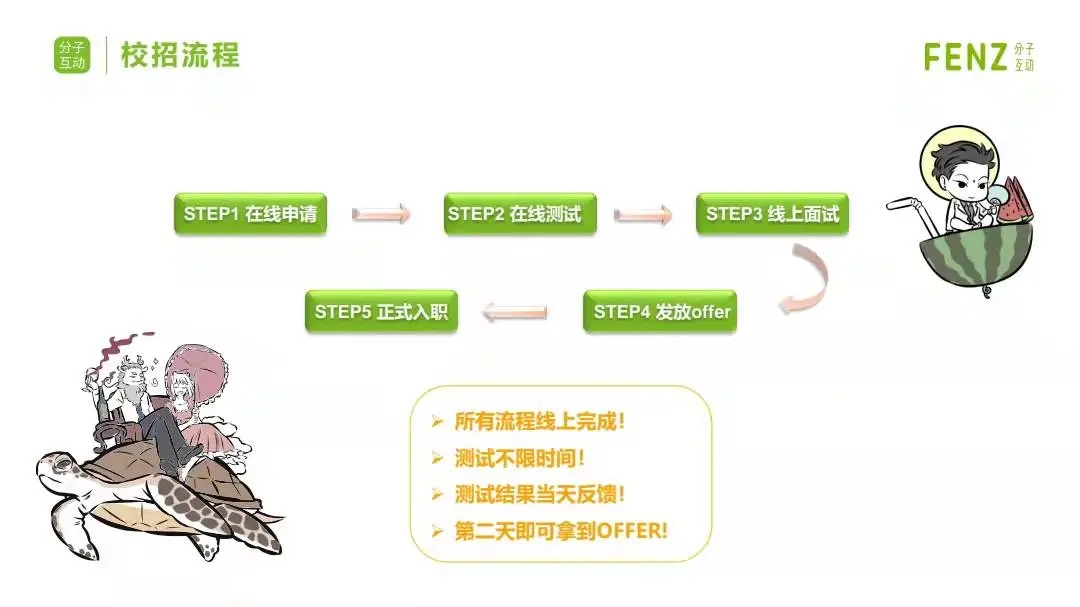 在招聘宣讲中,分子互动公司负责人为同学们讲述了公司的简介及发展历程,分子互动诞生于 2012 年,业务涉及动漫 IP 孵化、社交媒体营销传播、IP商业化开发、动画制作等多个模块,旗下 IP《非人哉》、《万圣街》、《有兽焉》系列等获得了极好的口碑及商业表现,系列内容全网粉丝 2000 万以上。