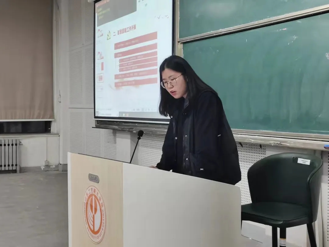 会议伊始,苏晓芳梓同学介绍了会议流程,对本次会议重要性进行说明。紧接着,各团支部书记围绕团支部“对标定级”参考标准以PPT的形式从班级建设、活动开展、团员管理、制度落实等多方面对一学年的工作进行了展示,重点突出2021年度团支部标准化、规范化建设和政治功能发挥情况,总结支部工作中的收获与不足,并对未来的工作做出规划与展望,为我们展现了各支部不同的风采以及团支部建设的多元性,体现了支部内同学们团结一致,齐心向上的良好氛围。