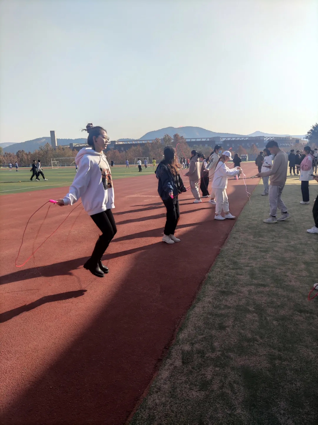 为积极响应学校“六个一”工作要求,鼓励学生参加户外运动,丰富校园文化生活,促进学生全面发展,按照校团委工作部署,2021年11月13日,数字艺术与传媒学院学生会在操场组织发动全体学生参加 “跳动青春、活力四射”跳绳比赛。