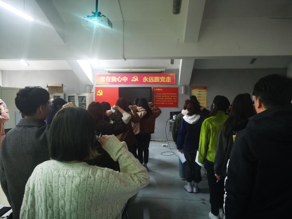 4月6日下午,数字艺术与传媒学院学生第一、第二党支部在B446会议室开展“重温入党誓词、坚定理想信念”主题党日活动。学生第一、第二党支部全体党员参加了本次党日活动。