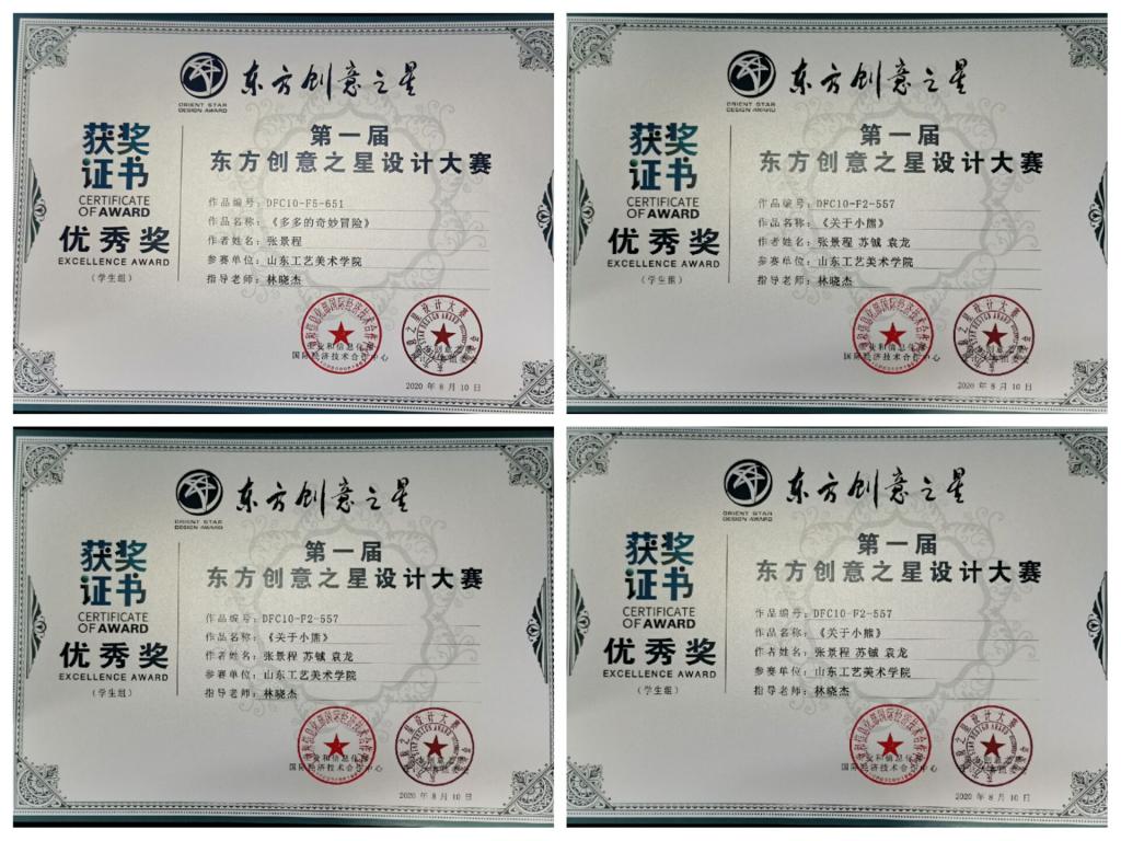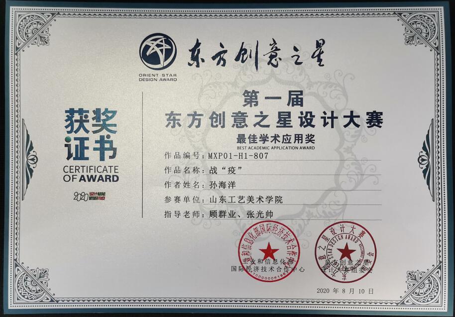 第九周的到来预示本学期即将过去一半。在各项学习活动平稳推进之时,本周伊始传来一个令人振奋的好消息——我院学生又在一项设计赛事中夺得佳绩!由顾群业、张光帅老师指导的学生孙海洋作品《战“疫”》在第一届东方创意之星设计大赛中荣获最佳学术应用奖;林晓杰老师指导的学生张景程作品《多多的奇妙冒险》、张景程、苏钺和袁龙作品《关于小熊》荣获优秀奖;另有入围奖六项,分别为《Listen app UI 概念设计》、《高能儿》、《防疫三字经》、《口罩侠》、《雷神治瘟,火神驱疫》和《你的守护神》等。