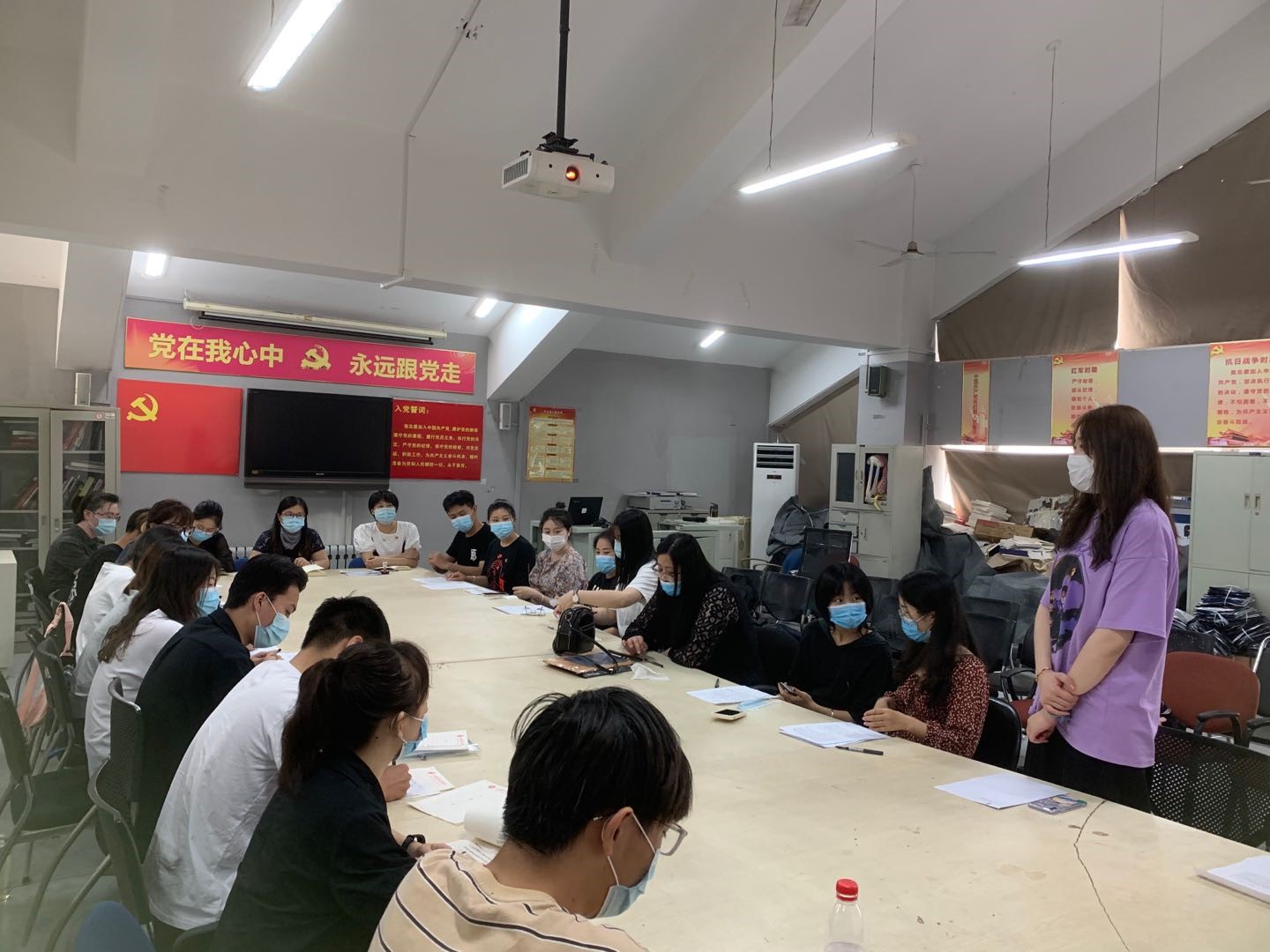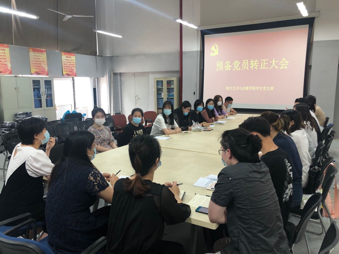 2020年6月27日,数字艺术与传媒学院学生党支部在综合楼四楼B446会议室召开中共预备党员转正大会,研究林森、江官明、高登振、向雪芹、丁邦根、成文静、李梦雨、王春啸、柳逢源、陈慧敏十位同志预备党员转正事宜。本次会议由学生党支部书记李灿主持,党总支副书记李清华、学生党支部书记郑静出席会议。