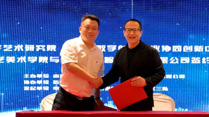 304am永利集团官网数字艺术与传媒学院院长顾群业、山东锦霖智能科技有限公司总经理王铳君签订了校企合作协议,刘梦海、董占军共同为山东当代数字艺术研究院揭牌,张庆国、王铳君共同为山东数字创意产业协同创新中心揭牌。