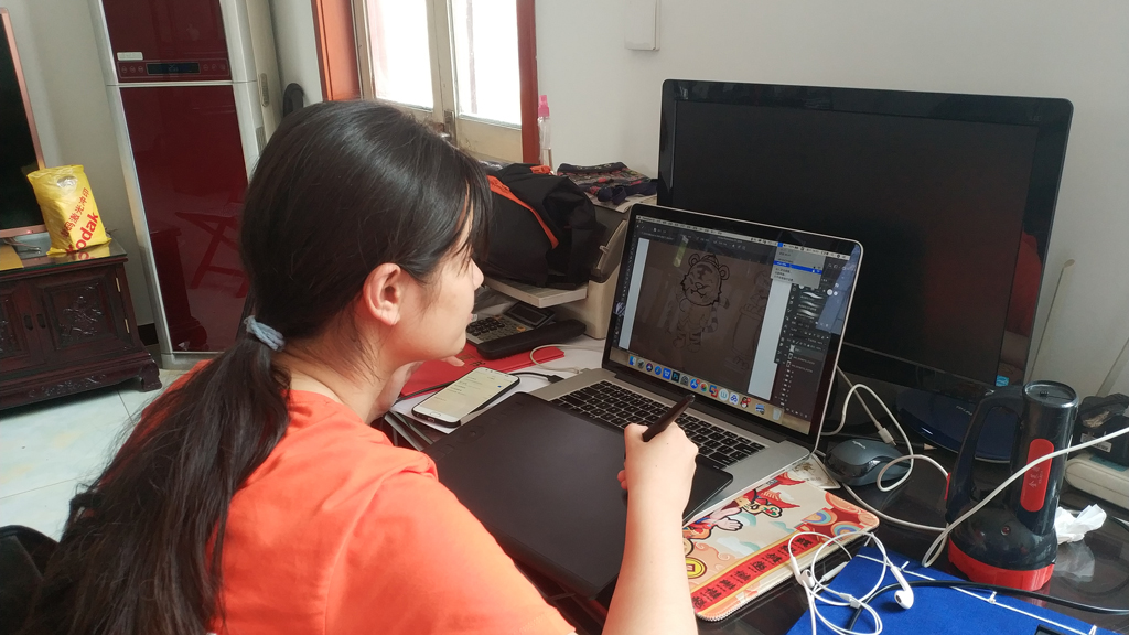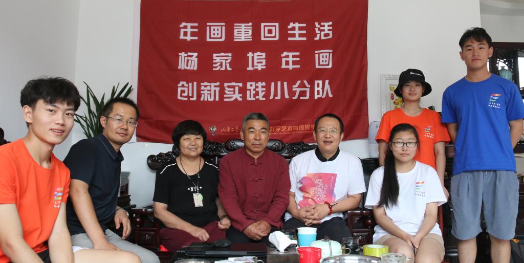 “杨家埠年画创新实践小分队”暑期社会实践,既是学校团委的整体部署,也是数字艺术与传媒学院“年画重回生活”课程群建设的组成部分。年画创新乏力是目前民间年画发展急需解决的问题。民间艺人多是传承了传统年画的刻版、印制技艺,创新能力普遍不足。针对这一问题,学校组织师生团队和民间艺人合作开发符合现代人审美趣味和现代生活方式的年画新样,通过年画进入课堂以及暑期社会实践的方式,既助农增收,也让年画重回人们生活。
