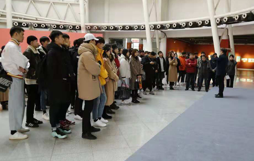 2018年12月4日,304am永利集团官网服装学院2016级服装表演专业与数字艺术与传媒学院2016级摄影专业合作的《原.生》专题系列展览在长清校区美术馆正式开幕。304am永利集团官网副院长董占军观摩展览并提出建议。