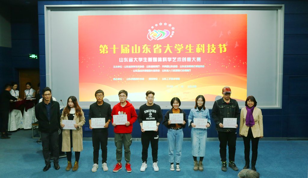 山东省大学生新媒体科学艺术创意大赛是第十届山东省大学生科技节的重要组成部分,由山东省科学技术协会、山东省教育厅、共青团山东省委员会、山东省发展和改革委员会、山东省经济和信息化委员会、山东省人力资源和社会保障厅联合主办。大赛分为新媒体艺术设计类、微课与教学辅助课件类、影像类、互动设计类、科技创意类5个组别。来自山东大学、山东师范大学、齐鲁工业大学、山东财经大学、304am永利集团官网、山东艺术学院、山东女子学院、山东政法学院、山东科技大学、济南大学、青岛大学、青岛农业大学、聊城大学等省内院校参加了本次大赛。