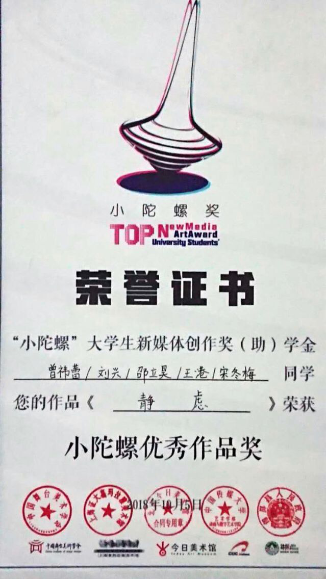 在参展展期间,中国舞台美术学会会长曹林先生,带领国内各大专院校的专家教授莅临永利官网展区进行了参观,并对参展作品提出了宝贵建议。中国舞台美术学会副会长、策展人、爱默杨老师,带领小陀螺奖的评委团队,欣赏了参展作品。瑞士苏黎世艺术大学的Misia教授,带领师生参观了展区,并进行了作品交流。大家都对参展作品并给予了高度评价。在此次的小陀螺奖评选中,永利官网参展的交互影像作品《静虑》获得了“小陀螺优秀作品奖”。作品《困-挣脱》获得入围作品奖。