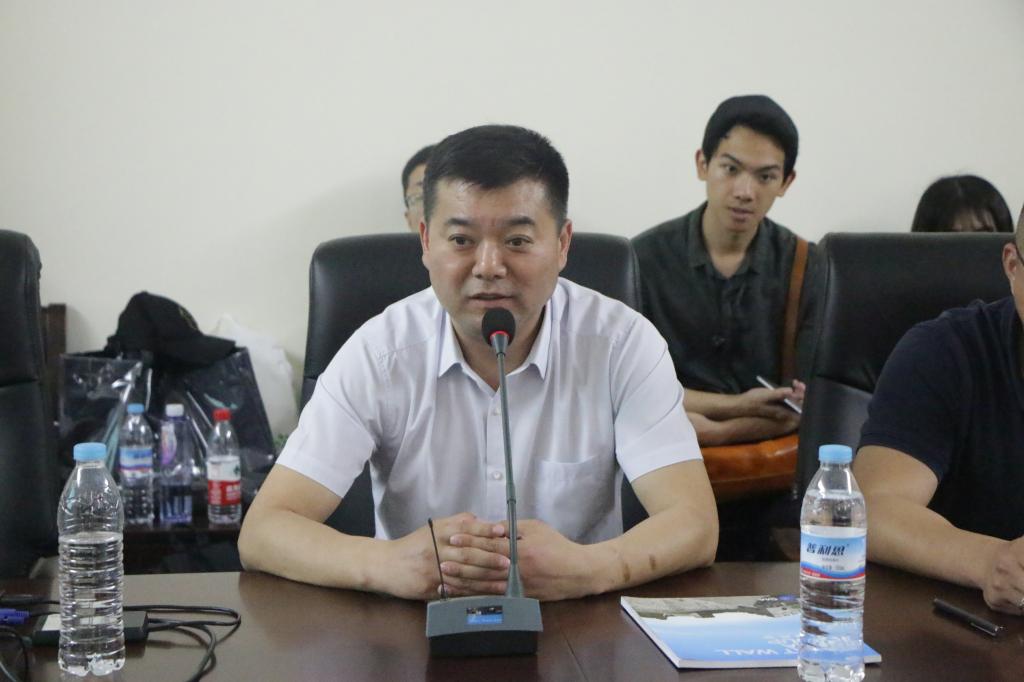 长城梅地亚集团总经理黄刚致欢迎词,首先,他讲述了公司与304am永利集团官网的良好和长久的合作关系。他谈到希望进一步专业对位共同搭建平台,将项目与教学具体结合起来。他认为这将会是一个新的起点,公司可以为学生提供实习实践的机会,真正将校企合作、产学研联合做到实处,影视需要技术与艺术的结合,并鼓励学生多进行影视创作,大力支持优秀的作品。