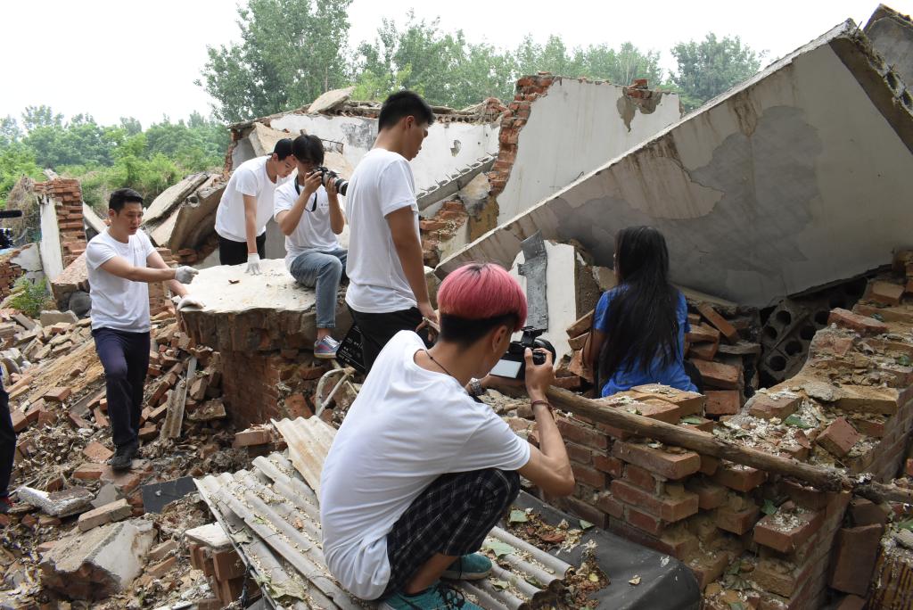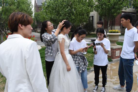 5月15日,学生们投入了紧锣密鼓的拍摄中,在最初的拍摄过程中,四个小组都难以进入正常拍摄状态,在专业老师耐心指导下,很快步入正轨。