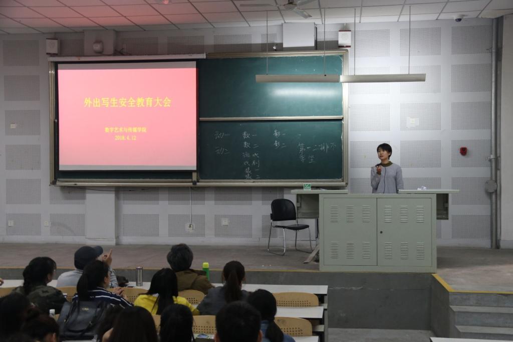 4月12日下午,数字艺术与传媒学院于长清校区综合办公楼十合堂召开2017级外出写生安全大会。本次大会由辅导员李灿主持,专业课教师代表于平、艾琳出席,2017级全体同学参加此次会议。