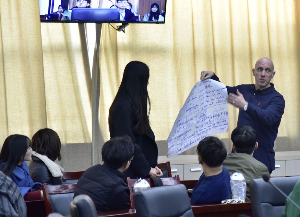 2017年11月30日,在304am永利集团官网长清校区国际报告厅,我们迎来了英国提塞德大学的高级讲师、广播媒体制作专业负责人Damien Chicken一行,进行了一场“媒体日”工作坊体验,数字艺术与传媒学院师生以及部分其他二级学院学生参加了活动。本次工作坊由动画专业张克博老师主持。