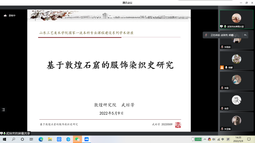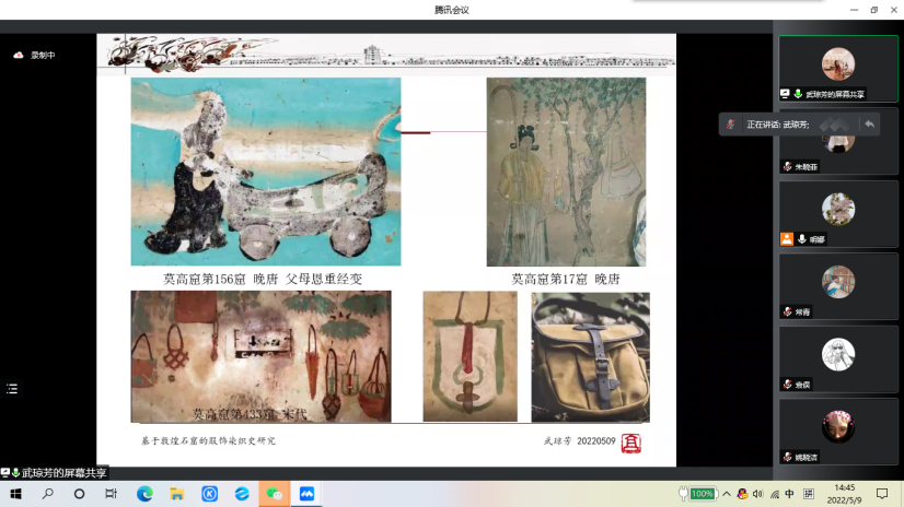 2022年5月9日下午,根据活动进度安排,我院如期举型了第二场线上讲座。本场讲座邀请敦煌研究院文化创意研究中心副主任、艺术学博士、东京艺术大学访问学者、北京大学人文社会科学研究院邀访学者武琼芳做了题为《基于敦煌石窟的服饰染织史研究》的讲座。
