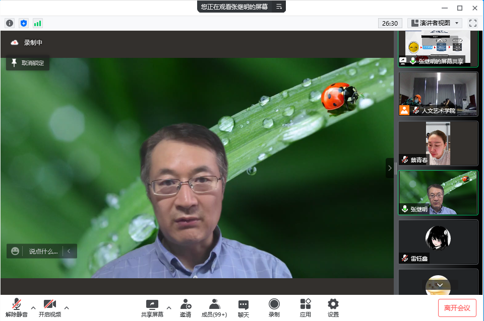 讲座结束后,人文艺术学院党总支副书记蔡青春对讲座进行了简要总结,提出了期许和建议,鼓励大家以正确积极的情绪面对疫情下的学习和生活,保持愉悦的心情和向上的生活态度,以合理的方式缓解和释放压力,以乐观开朗的心态面对学习生活,从各方面不断提高自身的综合素质。