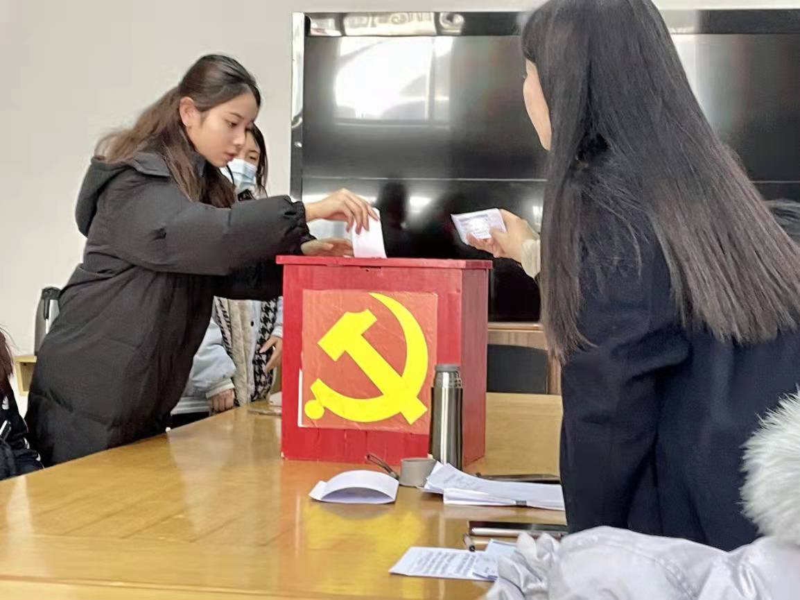 会议开始,支部书记徐亚辰宣布了本次大会议题和会议主要流程。会上,李昊鹏、俞书浓、王英梓3名预备党员同志汇报预备期间的思想、工作、学习情况。接着,支部委员会介绍了3名同志在预备期间的教育考察情况。之后,与会党员发表意见,对3名同志能否转正进行充分讨论。最后,与会正式党员采用无记名投票方式进行表决。3名预备党员均全票通过,被接收为中共正式党员。
