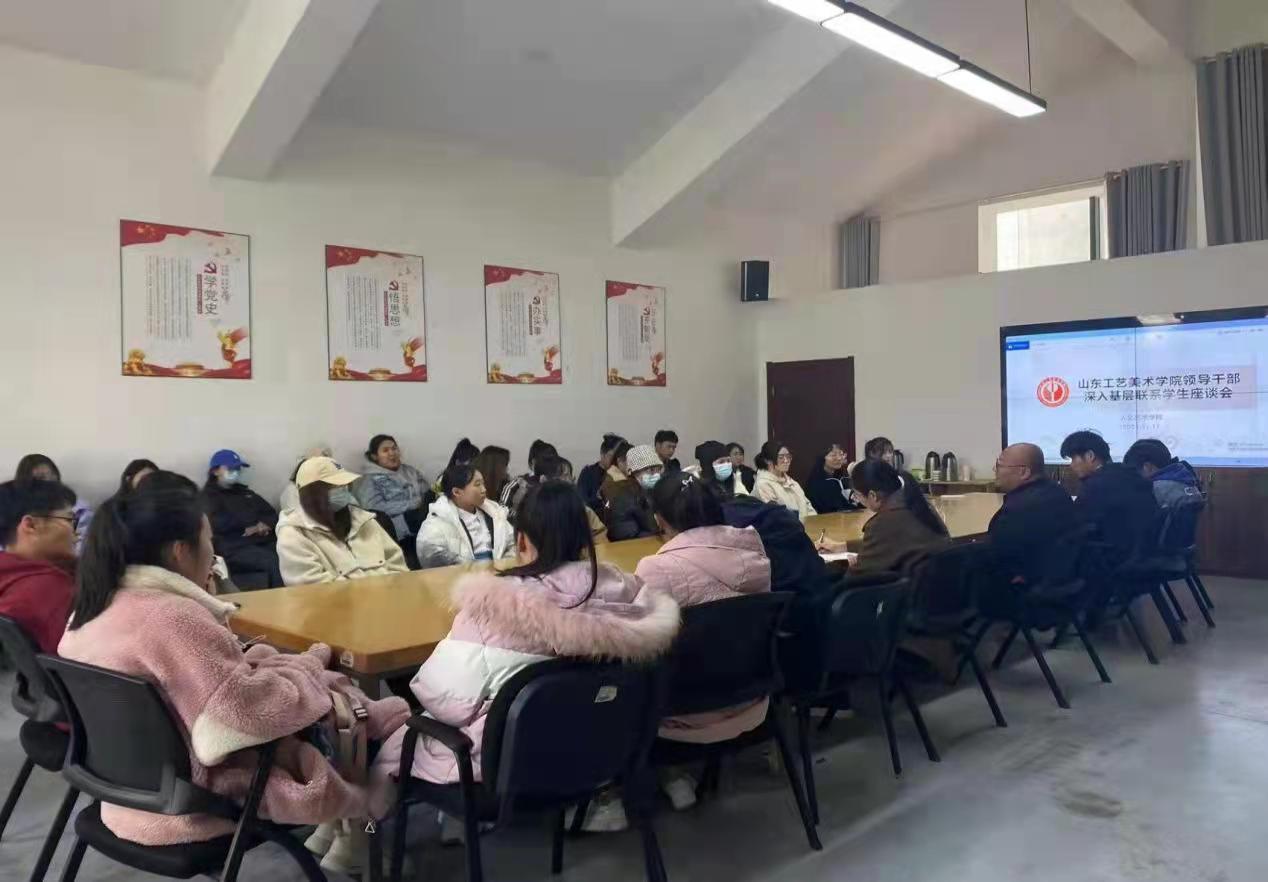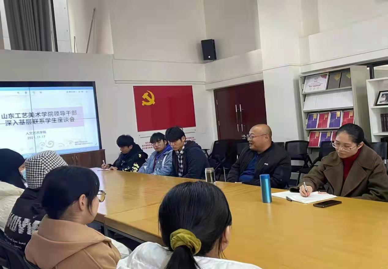 为贯彻落实《中共教育部党组关于加强和改进高校领导干部深入基层联系学生工作的通知》要求,人文艺术学院于2021年11月17日在长清校区综合楼B447会议室召开“倾听心声,关爱成长”深入基层联系学生座谈会。人文艺术学院徐磊院长作为2021级艺术史论班领导干部深入基层联系人同学生们进行了深切交谈,辅导员李晶及2021级艺术史论班全体学生参加。