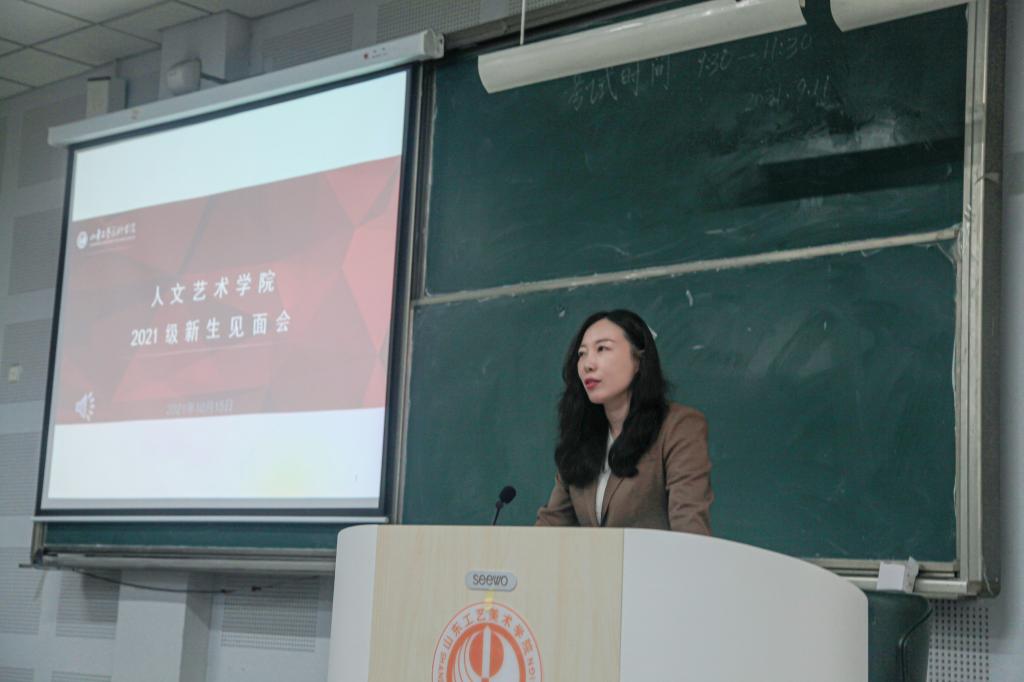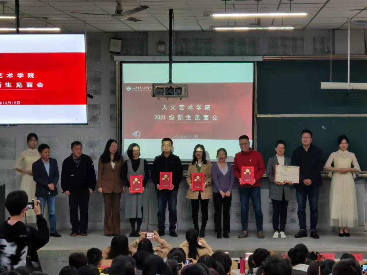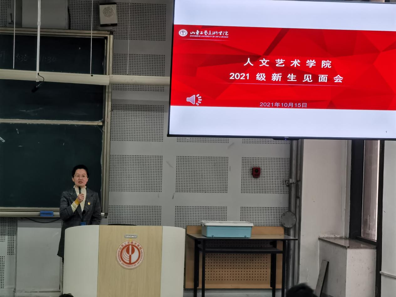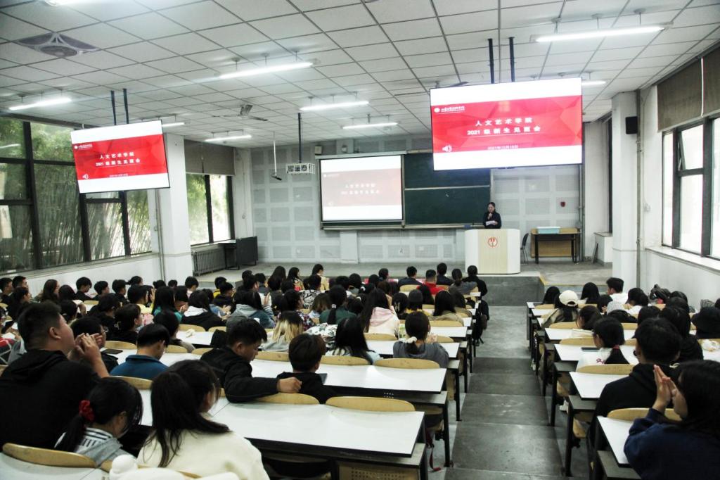 2021年10月15日,人文艺术学院在304am永利集团官网长清校区综合楼十合堂举办了2021级师生见面会。院长徐磊、党总支副书记张晓宁、副院长刘娅萍、各教研室主任、专业指导班主任、辅导员及办公室人员与全体新生共同出席了本次见面会。本次见面会由2021级新生辅导员李晶主持。